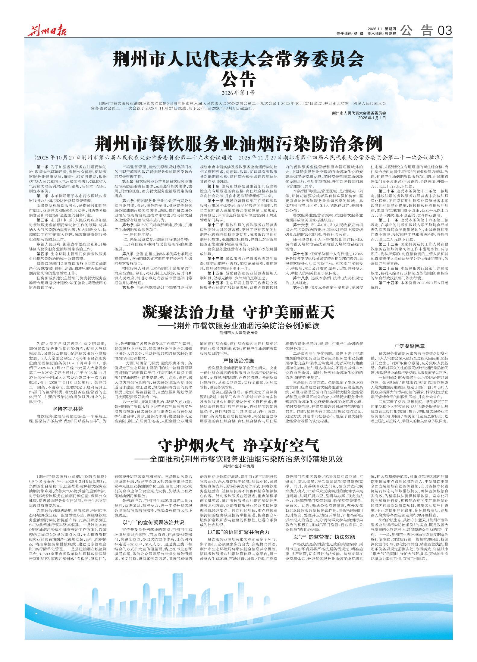 《荆州日报》(电子版)的一切内容(包括但不限于文字、图片、PDF、图表、标志、标识、商标、版面设计、专栏目录与名称、内容分类标准以及为读者提供的任何信息)仅供荆州日报读者阅读、学习研究使用,未经荆州日报及/或相关权利人书面授权,任何单位及个人不得将《荆州日报》(电子版)所登载、发布的内容用于商业性目的,包括但不限于转载、复制、发行、制作光盘、数据库、触摸展示等行为方式,或将之在非本站所属的服务器上作镜像。否则,荆州日报将采取包括但不限于网上公示、向有关部门举报、诉讼等一切合法手段,追究侵权者的法律责任。