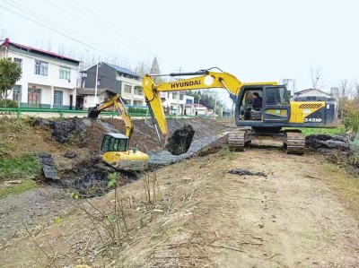 近日,高陵镇晏家巷村抢抓冬闲“黄金期”,对新华沟进行清淤,以改善农田灌排条件,提高沟渠蓄水量。 (通讯员 苏婷 蔡谦 摄)