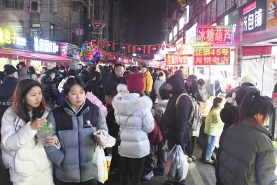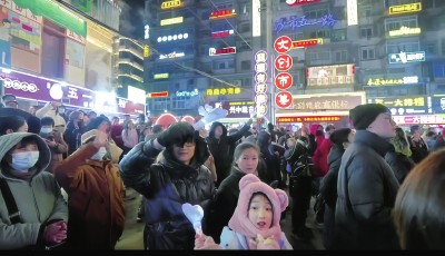 夜幕降临,夜游经济迎来流量峰值。吾悦广场“超级跨年派对”上,实力乐队、专业DJ轮番登场,万人大合唱与倒计时环节将氛围推向高潮,线上直播观看量近3.5万人次;全新开街的解放街道五一路80年代主题街区更是人气爆棚,15平方米的阳台化身微型剧场,民谣弹唱、国潮舞蹈、激昂唢呐等节目轮番上演,身着汉服的游人穿梭在复古彩绘墙与特色雕塑间,仿佛穿越回旧时光。怀旧场景与夜市烟火交织,让这条老街单日人流量突破5万人次,成为跨年打卡的“新地标”。