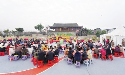 近日,“百年古镇 寻味闸口”民俗文化活动在闸口镇和祥村举行。游客在打年糕、杵糍粑、摊豆皮、年猪宴等活动中品尝特色美食,体验民俗技艺,探寻古镇文化,共同分享丰收的喜悦和新年的欢乐。图为游客参加年猪宴活动。