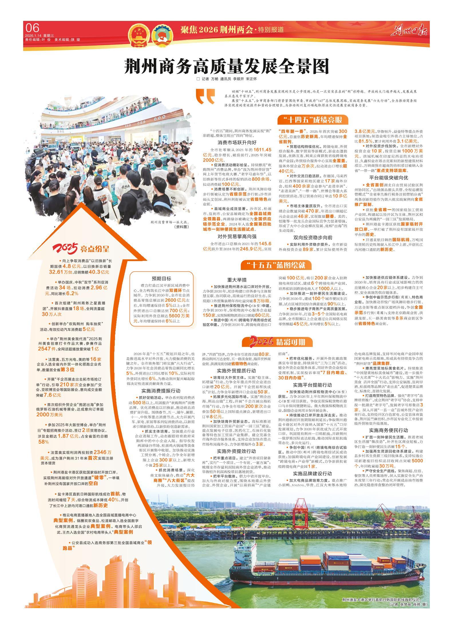 《荆州日报》(电子版)的一切内容(包括但不限于文字、图片、PDF、图表、标志、标识、商标、版面设计、专栏目录与名称、内容分类标准以及为读者提供的任何信息)仅供荆州日报读者阅读、学习研究使用,未经荆州日报及/或相关权利人书面授权,任何单位及个人不得将《荆州日报》(电子版)所登载、发布的内容用于商业性目的,包括但不限于转载、复制、发行、制作光盘、数据库、触摸展示等行为方式,或将之在非本站所属的服务器上作镜像。否则,荆州日报将采取包括但不限于网上公示、向有关部门举报、诉讼等一切合法手段,追究侵权者的法律责任。