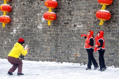 公园里,孩子们的嬉闹声此起彼伏。他们攥雪团、堆雪人,一个个憨态可掬的雪精灵在小手中诞生;年轻人则举着手机、相机,穿梭在银白世界里,定格古城雪色美景。清脆的笑声与快门声交织,在清冽的空气里久久回荡。