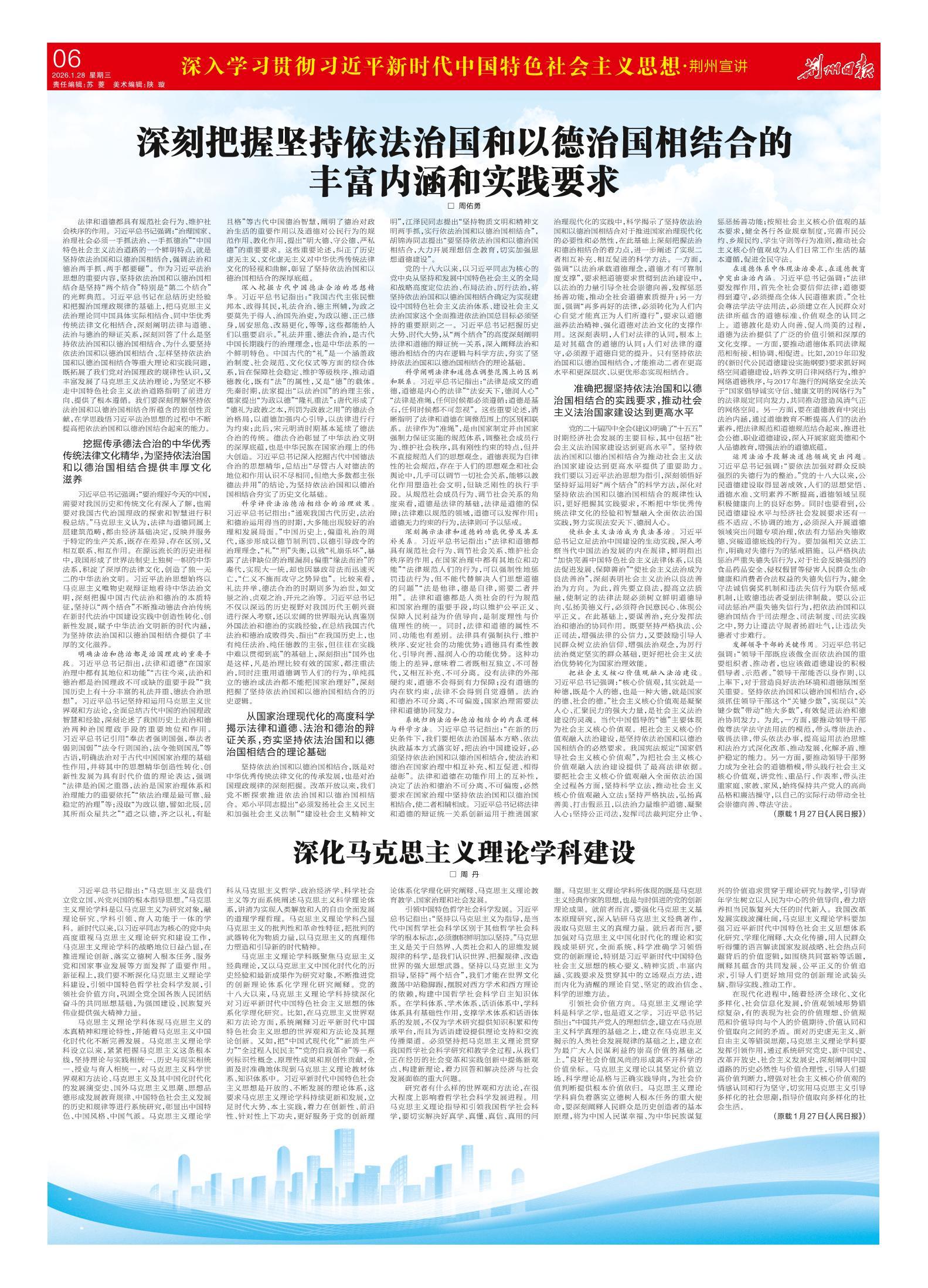 《荆州日报》(电子版)的一切内容(包括但不限于文字、图片、PDF、图表、标志、标识、商标、版面设计、专栏目录与名称、内容分类标准以及为读者提供的任何信息)仅供荆州日报读者阅读、学习研究使用,未经荆州日报及/或相关权利人书面授权,任何单位及个人不得将《荆州日报》(电子版)所登载、发布的内容用于商业性目的,包括但不限于转载、复制、发行、制作光盘、数据库、触摸展示等行为方式,或将之在非本站所属的服务器上作镜像。否则,荆州日报将采取包括但不限于网上公示、向有关部门举报、诉讼等一切合法手段,追究侵权者的法律责任。
