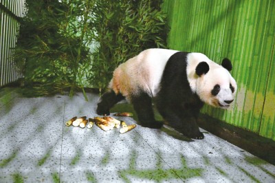 1月28日,大熊猫“蕾蕾”入住中国大熊猫保护研究中心雅安基地。(新华社 发)