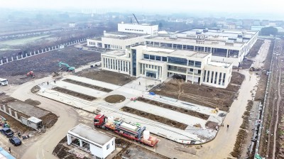 近日,鸟瞰荆州新城污水处理厂项目建设现场,主体施工已基本完成,工人们正加紧调试设备。该污水处理厂设计日处理能力为2.5万吨,建成投运后,将有效缓解区域污水处理能力不足问题,显著改善周边水体环境质量。(记者 张梦瑶 摄)