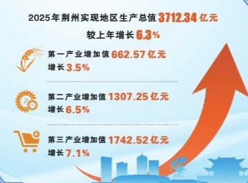 本报讯(记者刘娟 通讯员王晓莉)记者昨从市统计局获悉,据初步核算,2025年荆州实现地区生产总值3712.34亿元,按不变价格计算,较上年增长6.3%,全市经济呈现稳中求进、持续向好的发展态势,为全省支点建设注入荆州动能。