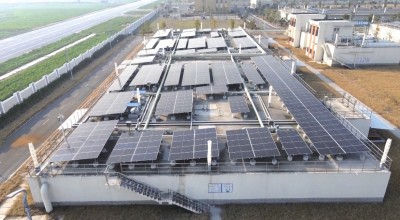1月27日正午,荆州经开区化工园C区观南路污水处理厂内,连片的深蓝色光伏板在阳光下熠熠生辉,源源不断将光能转化为清洁电力,为厂区生产运行注入绿色动能。