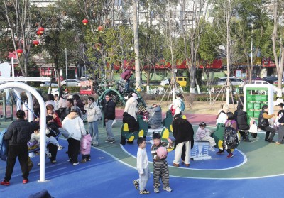 临江仙公园长江大桥桥柱上,一幅幅彩色墙绘跃入眼帘,为冬日江岸添上缤纷色彩;经过升级改造的太师渊公园焕然一新,不少家长儿童在此嬉戏游玩;中心城区主干道上,一串串喜庆的红灯笼和中国结高高挂起,宛如跳动的音符,奏响新春序曲……