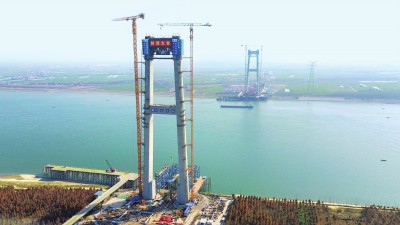 本报讯(记者陈雪玲 胡威虎 陈孝伍 卢艳 通讯员袁媛 孙春明 史家汲)2月9日,由湖北交投集团投资,中建三局、中铁建大桥局承建的荆州李埠长江公铁大桥取得关键进展——南北两岸主塔均顺利完成封顶,为后续猫道及主缆架设奠定坚实基础。