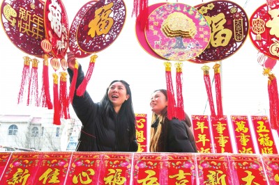 2月10日是北方小年,各地春节氛围日益浓厚。图为市民在河南省济源市南街集贸市场选购春节饰品。(新华社 发)
