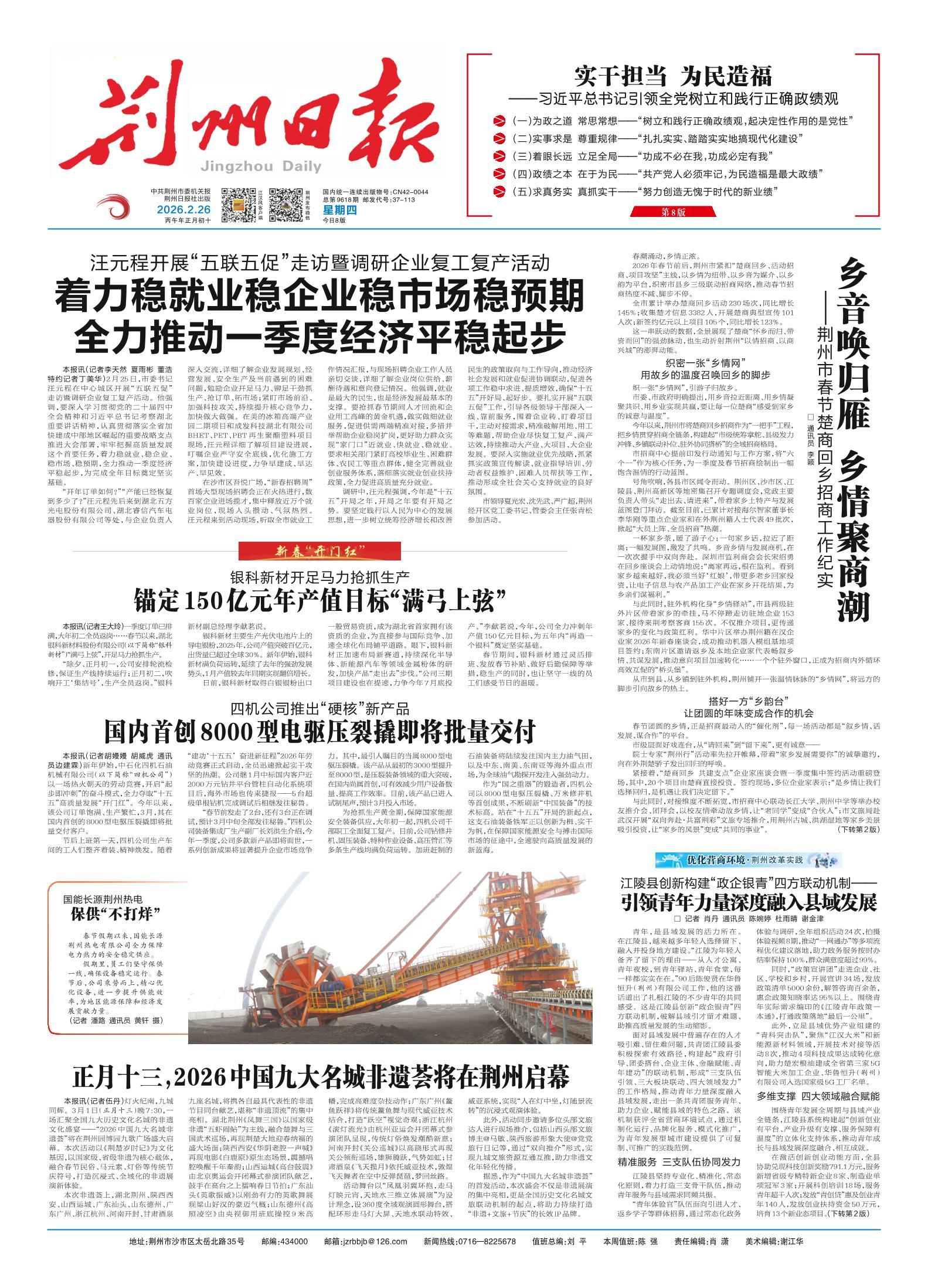 《荆州日报》(电子版)的一切内容(包括但不限于文字、图片、PDF、图表、标志、标识、商标、版面设计、专栏目录与名称、内容分类标准以及为读者提供的任何信息)仅供荆州日报读者阅读、学习研究使用,未经荆州日报及/或相关权利人书面授权,任何单位及个人不得将《荆州日报》(电子版)所登载、发布的内容用于商业性目的,包括但不限于转载、复制、发行、制作光盘、数据库、触摸展示等行为方式,或将之在非本站所属的服务器上作镜像。否则,荆州日报将采取包括但不限于网上公示、向有关部门举报、诉讼等一切合法手段,追究侵权者的法律责任。