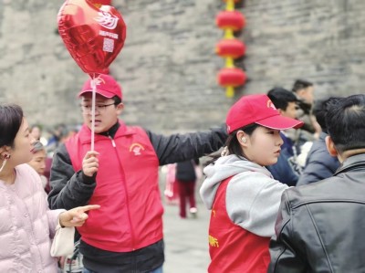 春节期间,荆州区委社会工作部组织200余名“荆声有你”志愿者,在荆州火车站、荆州古城、楚王车马阵等区域,开启全天候服务模式,用坚守与奉献为新春文旅活动保驾护航。 (通讯员 谢君林 摄)