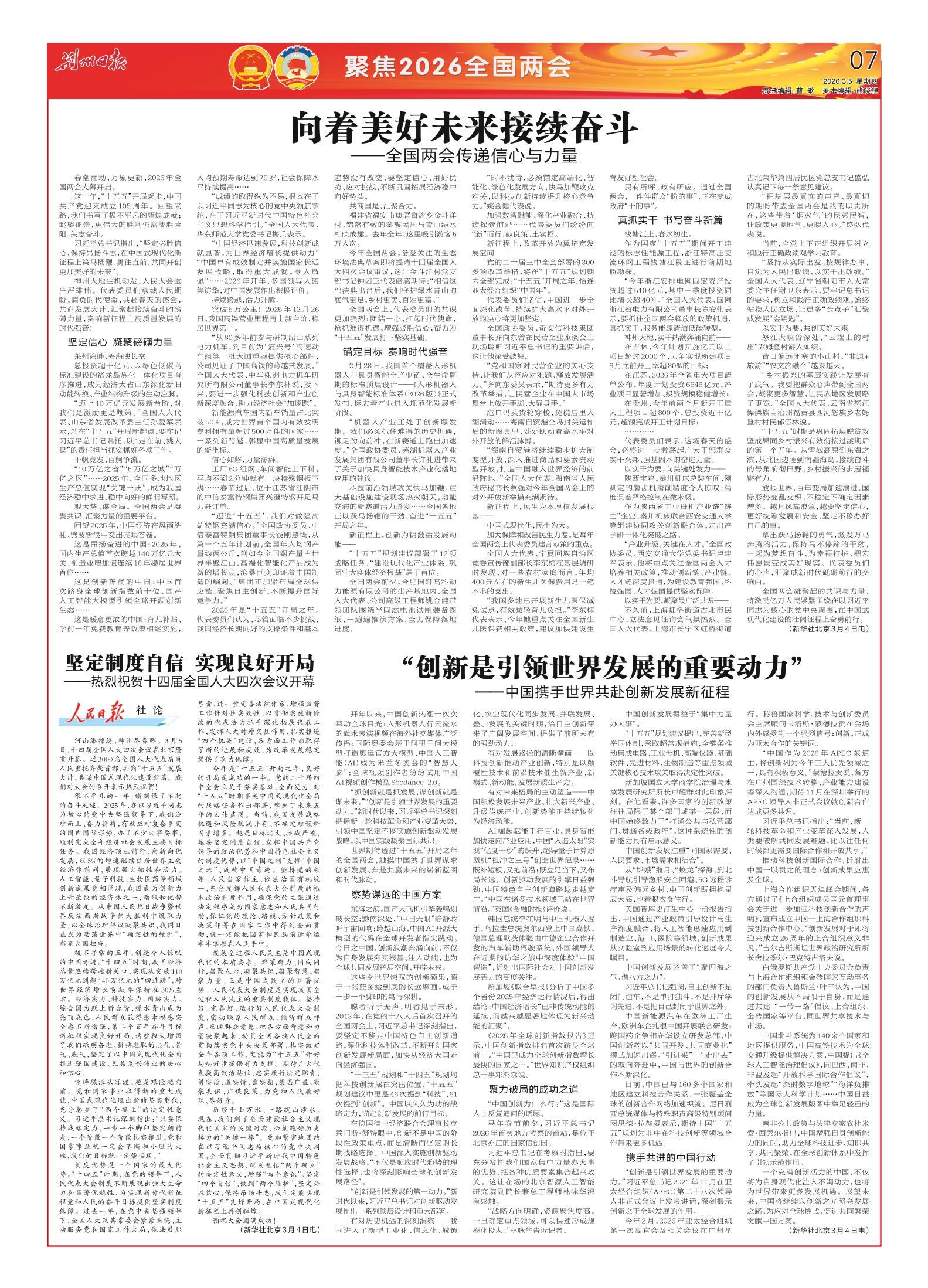 《荆州日报》(电子版)的一切内容(包括但不限于文字、图片、PDF、图表、标志、标识、商标、版面设计、专栏目录与名称、内容分类标准以及为读者提供的任何信息)仅供荆州日报读者阅读、学习研究使用,未经荆州日报及/或相关权利人书面授权,任何单位及个人不得将《荆州日报》(电子版)所登载、发布的内容用于商业性目的,包括但不限于转载、复制、发行、制作光盘、数据库、触摸展示等行为方式,或将之在非本站所属的服务器上作镜像。否则,荆州日报将采取包括但不限于网上公示、向有关部门举报、诉讼等一切合法手段,追究侵权者的法律责任。