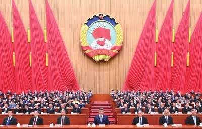 三月的北京,春启华章。人民大会堂大礼堂灯光璀璨,气氛隆重热烈。中国人民政治协商会议会徽悬挂在主席台正中,十面鲜艳的红旗分列两侧。