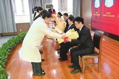 在全场瞩目下,10名青年教师向杨胜利、杜念念、万裕萍等荆州市中医医院资深临床专家行拜师礼。三鞠躬、呈递拜师帖、献花……传统礼仪中蕴含着对中医药文化的敬畏与传承的决心。