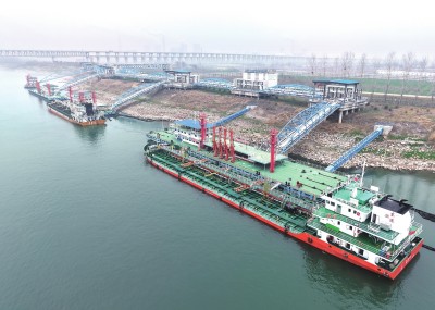 3月5日,江陵石化港区,2艘千吨级船舶正装载由华鲁恒升(荆州)有限公司生产的产品,即将发往江苏。