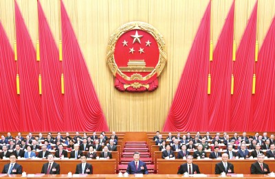 3月12日下午,第十四届全国人民代表大会第四次会议在北京人民大会堂闭幕。党和国家领导人习近平、李强、王沪宁、蔡奇、丁薛祥、李希、韩正等在主席台就座。(新华社 发)