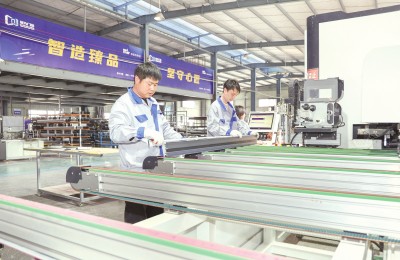 近日,湖北维为门窗科技有限公司生产车间内,数字化生产线高速运转,工人们有条不紊地进行门窗部件切割、组装等工作,现场一片红火的生产景象。近年来,公司融合国际前沿门窗工艺与本土精湛制造技术,生产的高品质门窗畅销全国。(记者 肖琦 摄)