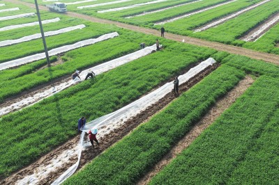 近日,在弥市镇合兴村,农户们正抓抢农时,对300亩南瓜田进行覆膜和撒药,田间地头一派春耕备耕的繁忙景象。(通讯员 方肇临 摄)