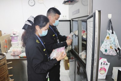近期,荆州区市场监管局开展治理网络餐饮食品安全问题专项行动,执法人员深入餐饮单位后厨,重点检查冷藏食品储存、食材新鲜度,认真核查食品原料来源。 (通讯员 程本洪 摄)