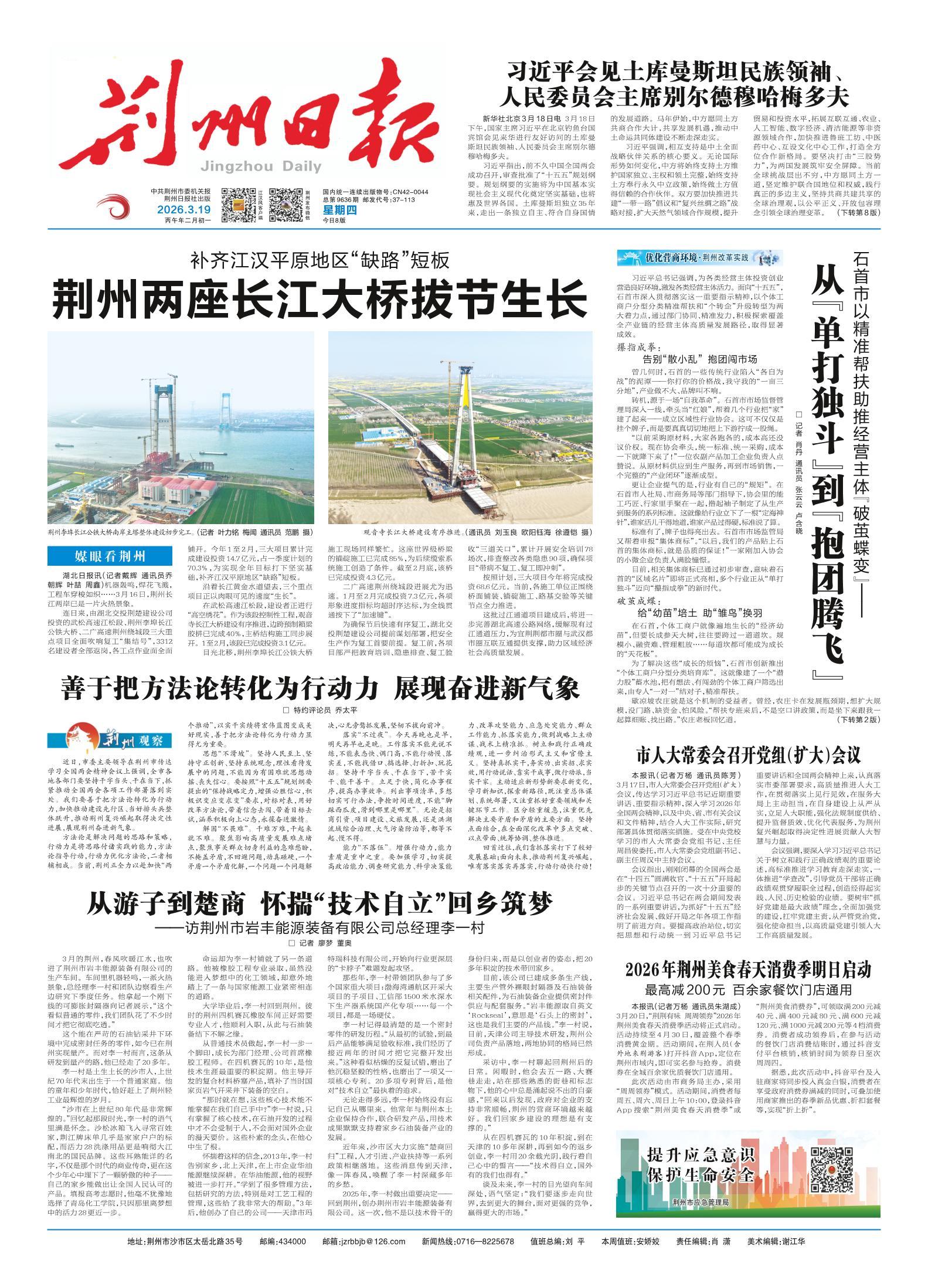 《荆州日报》(电子版)的一切内容(包括但不限于文字、图片、PDF、图表、标志、标识、商标、版面设计、专栏目录与名称、内容分类标准以及为读者提供的任何信息)仅供荆州日报读者阅读、学习研究使用,未经荆州日报及/或相关权利人书面授权,任何单位及个人不得将《荆州日报》(电子版)所登载、发布的内容用于商业性目的,包括但不限于转载、复制、发行、制作光盘、数据库、触摸展示等行为方式,或将之在非本站所属的服务器上作镜像。否则,荆州日报将采取包括但不限于网上公示、向有关部门举报、诉讼等一切合法手段,追究侵权者的法律责任。