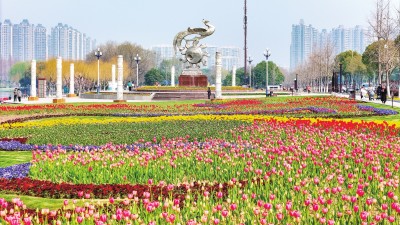近日,走进荆州金凤广场,仿佛迈入一个色彩斑斓的童话世界。25万株郁金香迎着春风肆意绽放,2万平方米的布展将广场装扮成一片流动的花海。