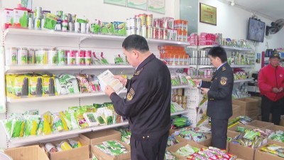 近日,县农业综合执法大队执法人员在斗湖堤镇一家农资经营门店内对销售的农资产品进行检查。随着春耕生产全面展开,农资购销迎来高峰。为确保农民群众买到放心农资,连日来,该大队持续开展农资打假专项行动,全力护航春耕生产。(通讯员 龚殿 摄)