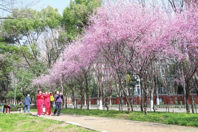 近日,荆襄河湿地公园内春花烂漫、花香四溢,不少市民前来赏花踏青、拍照打卡、锻炼游玩,尽享春日美好时光,感受浓浓的春日气息。这里也成为市民奔赴春日之约的好去处。(记者 肖琦 摄)