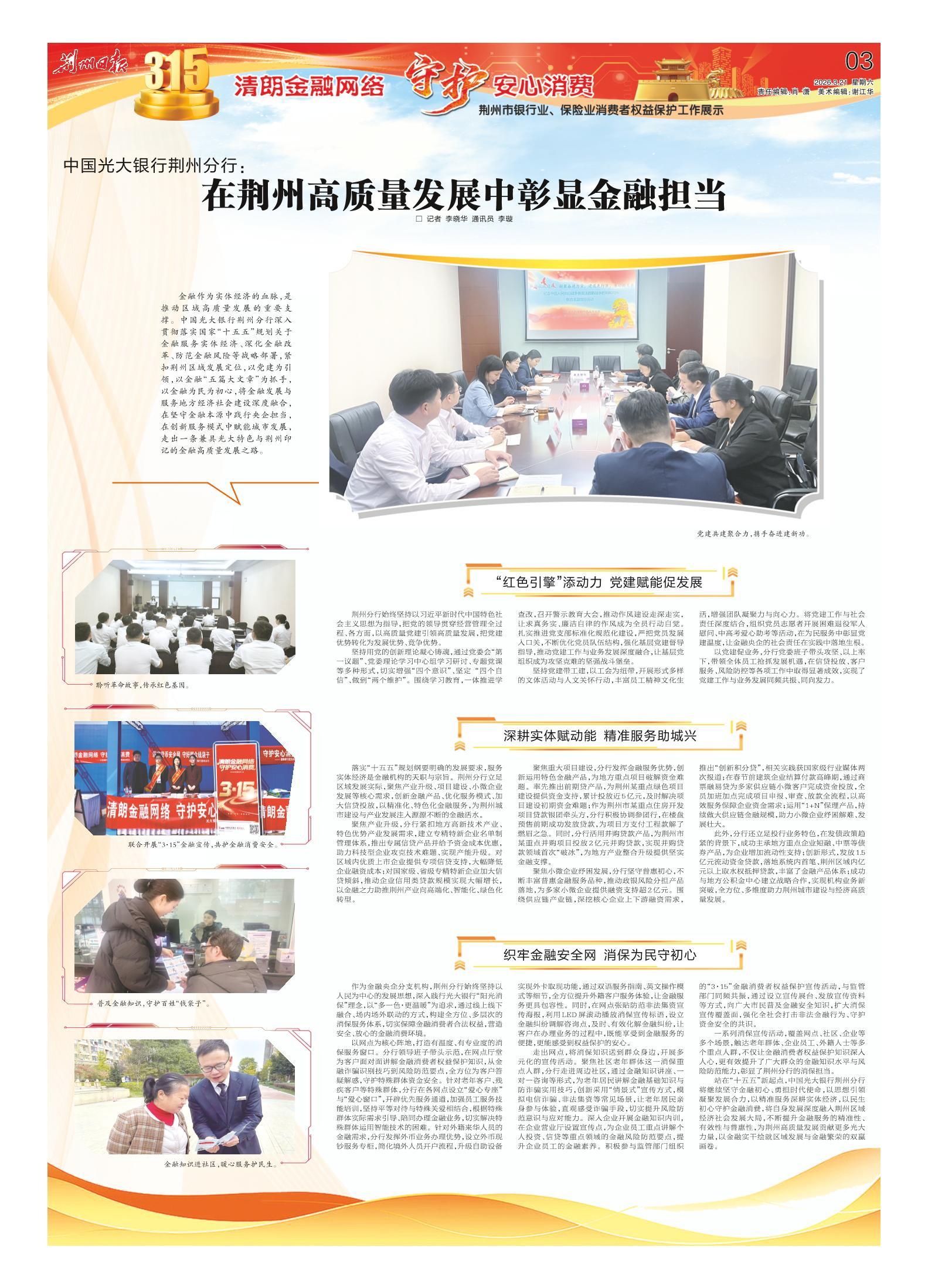 《荆州日报》(电子版)的一切内容(包括但不限于文字、图片、PDF、图表、标志、标识、商标、版面设计、专栏目录与名称、内容分类标准以及为读者提供的任何信息)仅供荆州日报读者阅读、学习研究使用,未经荆州日报及/或相关权利人书面授权,任何单位及个人不得将《荆州日报》(电子版)所登载、发布的内容用于商业性目的,包括但不限于转载、复制、发行、制作光盘、数据库、触摸展示等行为方式,或将之在非本站所属的服务器上作镜像。否则,荆州日报将采取包括但不限于网上公示、向有关部门举报、诉讼等一切合法手段,追究侵权者的法律责任。
