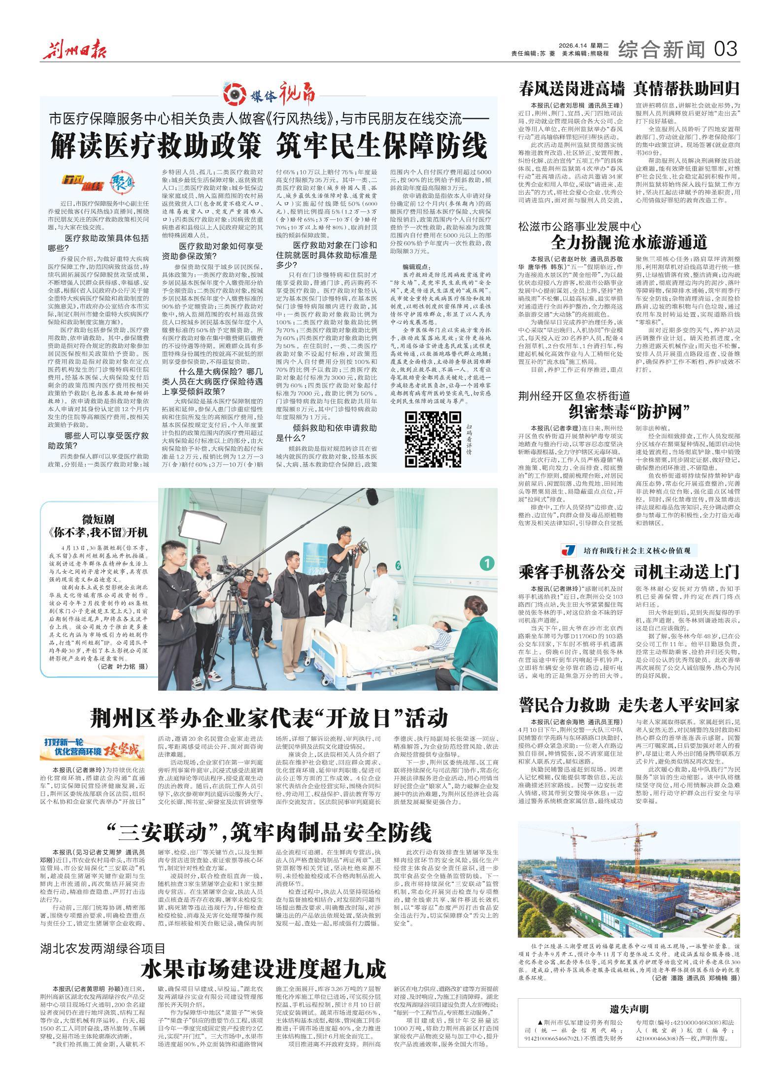《荆州日报》(电子版)的一切内容(包括但不限于文字、图片、PDF、图表、标志、标识、商标、版面设计、专栏目录与名称、内容分类标准以及为读者提供的任何信息)仅供荆州日报读者阅读、学习研究使用,未经荆州日报及/或相关权利人书面授权,任何单位及个人不得将《荆州日报》(电子版)所登载、发布的内容用于商业性目的,包括但不限于转载、复制、发行、制作光盘、数据库、触摸展示等行为方式,或将之在非本站所属的服务器上作镜像。否则,荆州日报将采取包括但不限于网上公示、向有关部门举报、诉讼等一切合法手段,追究侵权者的法律责任。