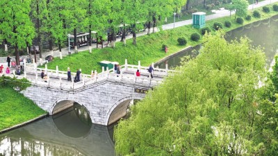 春日里,荆州区明月公园风光宜人,人文景致与自然生态和谐相融,众多市民前来散步休闲、观景放松,在绿意与文脉中尽享惬意时光。 (通讯员 王思奇 摄)