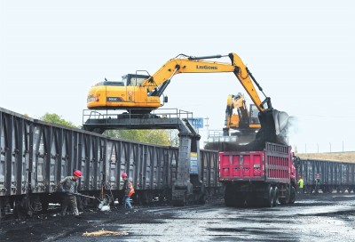 2月28日,荆州铁水联运旺港码头一派繁忙,近10台跨越式作业车抓紧卸载转运到港煤炭。
