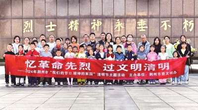 本报讯(记者解慧 通讯员尹家湘)3月30日上午,市委文明办联合荆州晚报小记者团、江汉风亲子俱乐部,在荆州市烈士陵园开展2024年荆州市“我们的节日·精神的家园”清明节主题活动,倡导市民过文明清明。