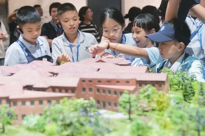 7月8日,孩子们在湖北省武汉市中国建筑科技馆参观。当日,由湖北省文化和旅游厅与中建三局集团有限公司主办的2024港澳青少年荆楚行游学活动启动,嘉宾和港澳青少年代表汇聚湖北武汉,通过参与各种特色活动,了解湖北现代化建设的成就。 (新华社 发)