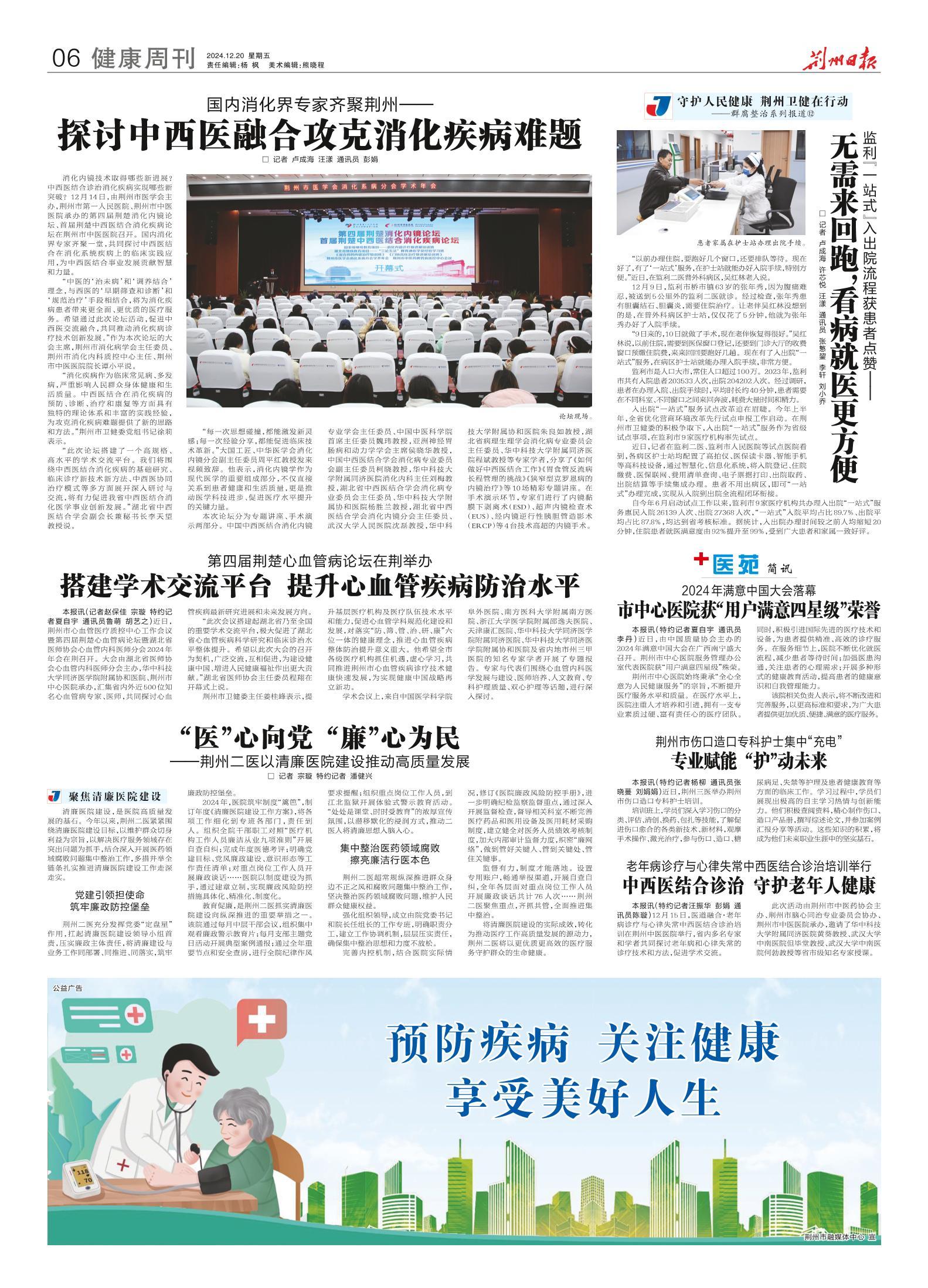 “消化疾病作为临床常见病、多发病,严重影响人民群众身体健康和生活质量。中西医结合在消化疾病的预防、诊断、治疗和康复等方面具有独特的理论体系和丰富的实践经验,为攻克消化疾病难题提供了新的思路和方法。”荆州市卫健委党组书记徐莉表示。