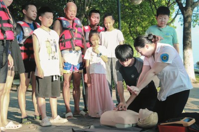 本报讯(通讯员张慜鋆 李轩 杨光)连日来,荆州持续高温,荆江岸边吸引了不少前来戏水纳凉的市民。为积极响应市委宣传部关于《暑期防溺水社会宣传工作提示》要求,进一步增强市民(特别是未成年人)防溺水急救知识,7月14日傍晚,市卫健委联合市急救中心,在荆江大堤观音矶段开展了一场沉浸式防溺水急救知识培训。