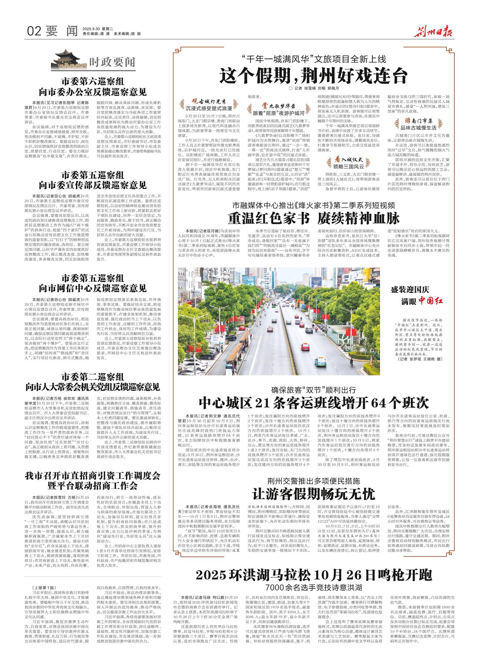 9月30日至10月7日晚,荆州古城东门、大北门朝宗楼、老南门将联动上演多场光影秀,以现代科技融合古城风貌,为游客带来一场视觉与文化盛宴。