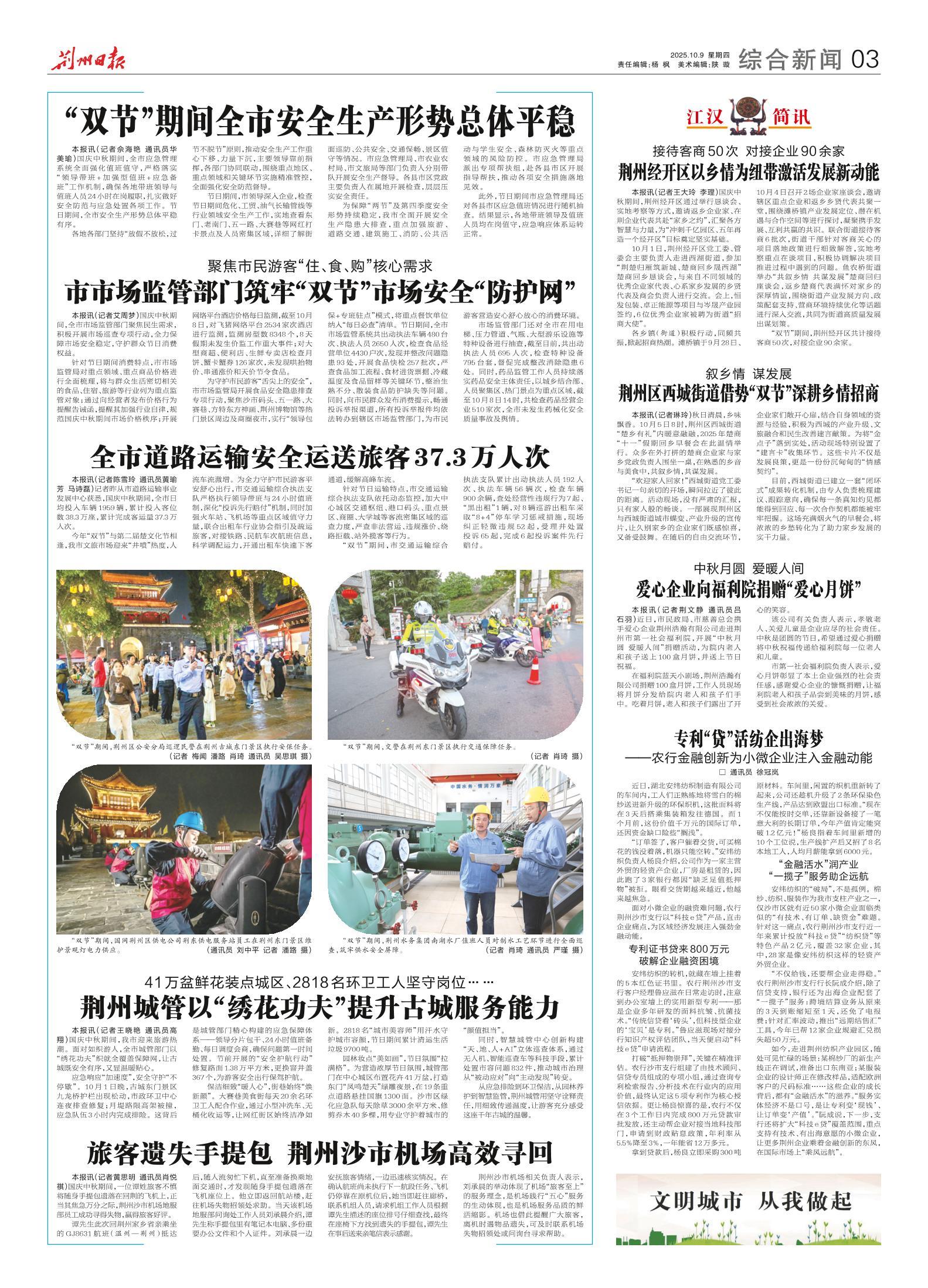 本报讯(记者黄思明 通讯员肖悦祺)国庆中秋期间,一位谭姓旅客不慎将随身手提包遗落在回荆的飞机上,正当其焦急万分之际,荆州沙市机场地服部员工成功寻得失物,赢得旅客好评。