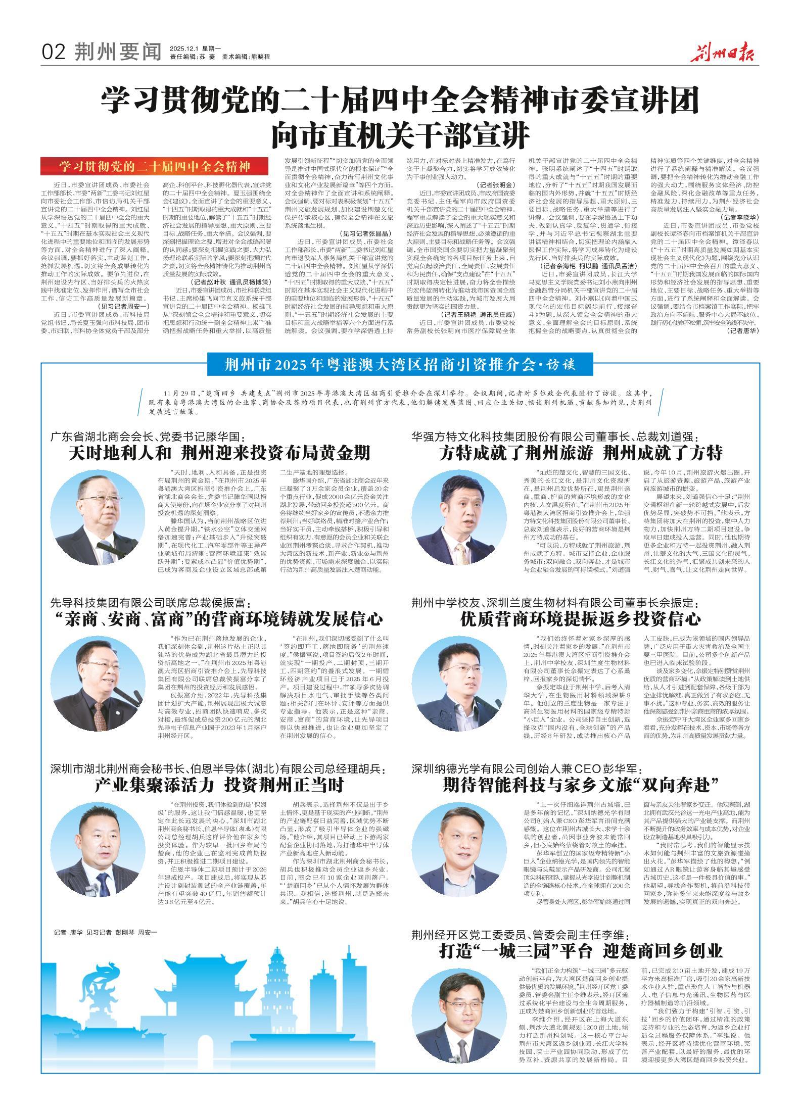 荆州市2025年粤港澳大湾区招商引资推介会·访谈