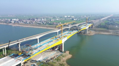 松西河特大桥横跨松滋西河,连接松滋市与公安县,全长420米,单幅桥宽13米,跨径布置为(110+200+110)米,其独特的“波形腹板+钢底板”新型结构系首次在大跨径梁式桥中应用。这种结构设计轻巧而坚固,使大桥在跨越松西河时,能够为后期航道升级改造预留充分的保障条件。