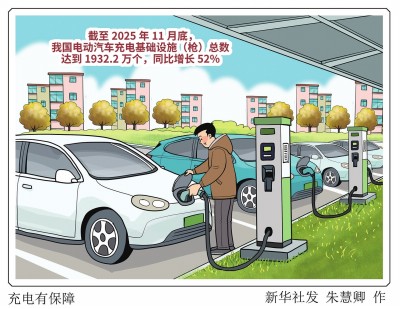 记者12月23日从国家能源局获悉,截至2025年11月底,我国电动汽车充电基础设施(枪)总数达到1932.2万个,同比增长52%。