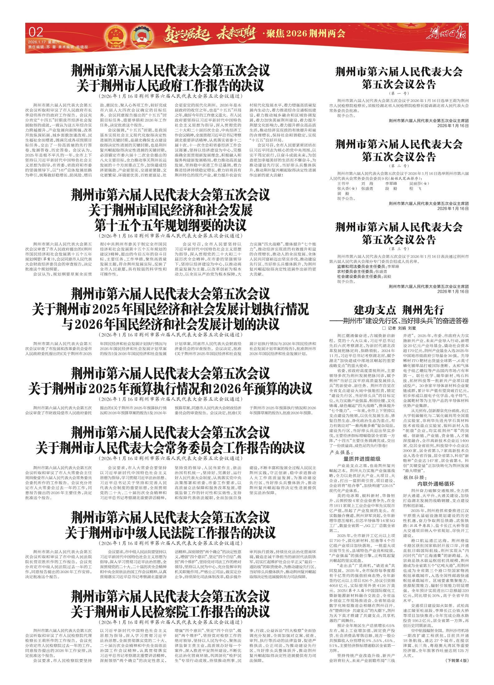 荆州市第六届人民代表大会第五次会议关于荆州市2025年预算执行情况和2026年预算的决议