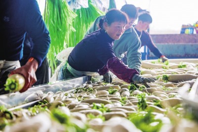 近日,位于李埠镇的荆州市春欣农业发展有限公司内,工人们正在紧锣密鼓地洗萝卜,抓抢销售旺季。据悉,一直持续至3月底,每天都将有近75吨萝卜从此地运出,供应全国市场。(通讯员 李莉 摄)