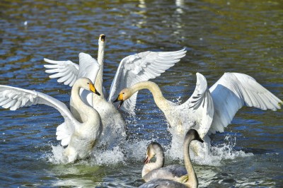 冬日的黄河湿地,藏不住勃勃生机,大天鹅扬起脖颈,啼声清越,同伴纷纷应和,一派其乐融融的景象。