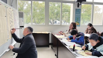 近日,西城街道“楚韵课堂”楚简非遗传承公益培训班内散发浓浓墨香,众多楚文化爱好者正在兴致盎然地学习楚简相关知识。(通讯员 江淑敏 摄)